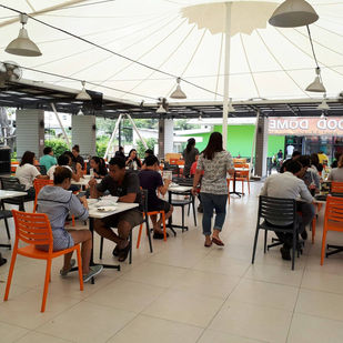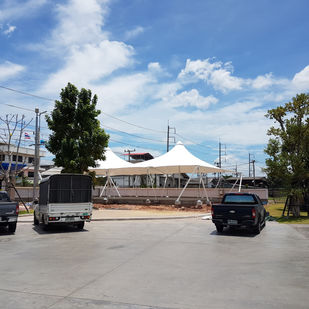 Twin poles tensile structure use as canteen canopy in PTT gas station. It give brightness to the sitting area and keep the heat away.
